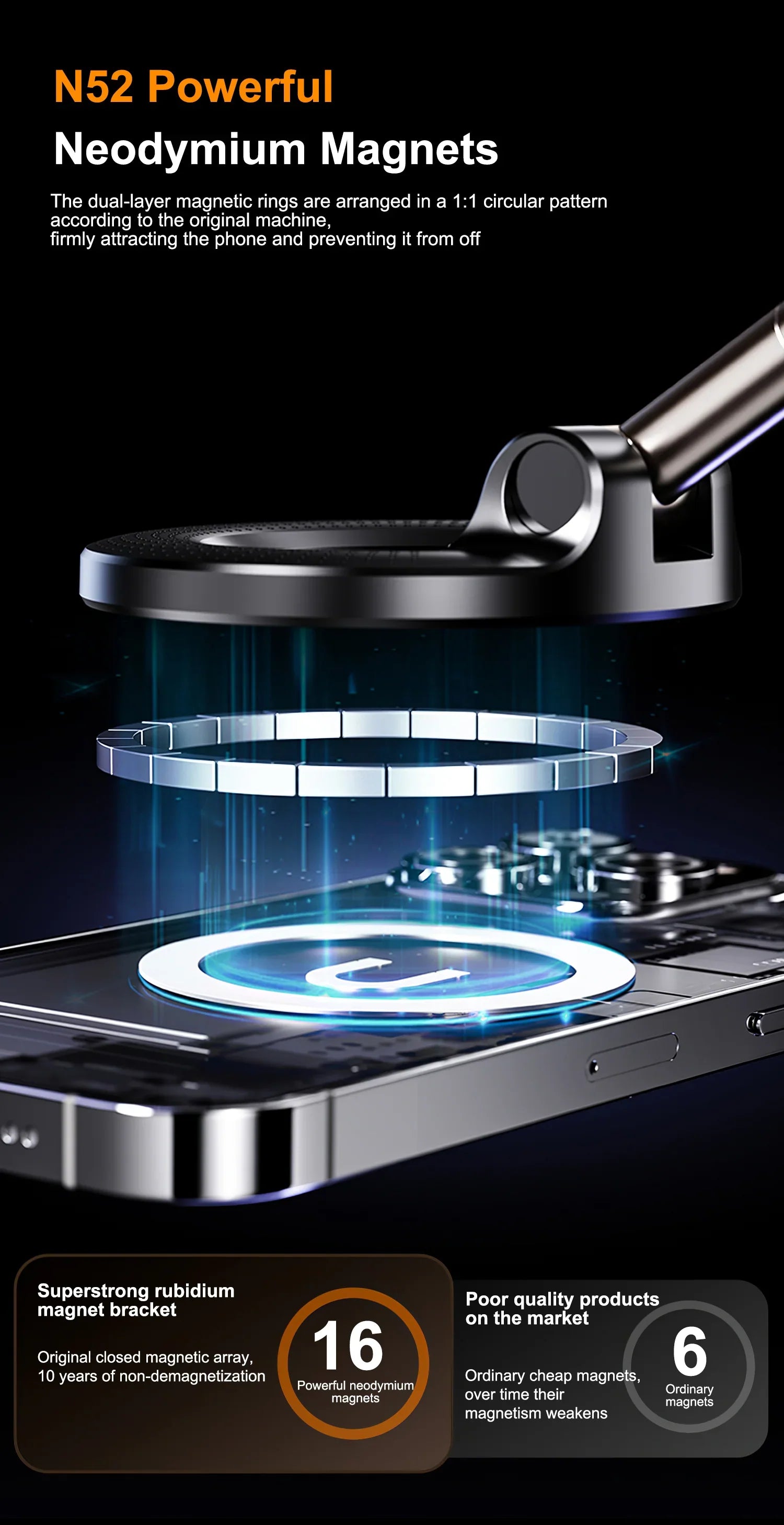 Built with premium N52 magnets, this mount keeps your iPhone stable even on bumpy road rides or during sudden movements. - 360° Rotational Viewing